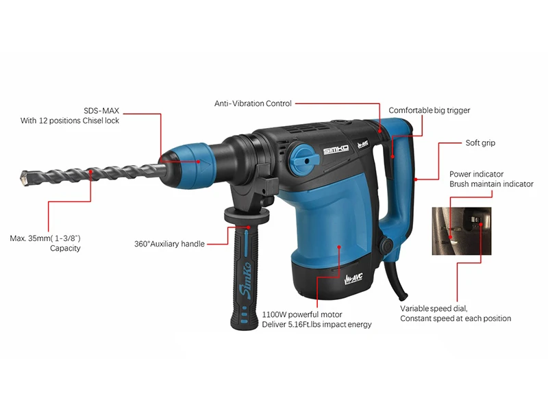 ● 鑿子可12檔位調節,適用於不同角度的工作環境。
